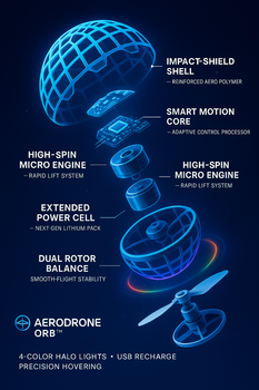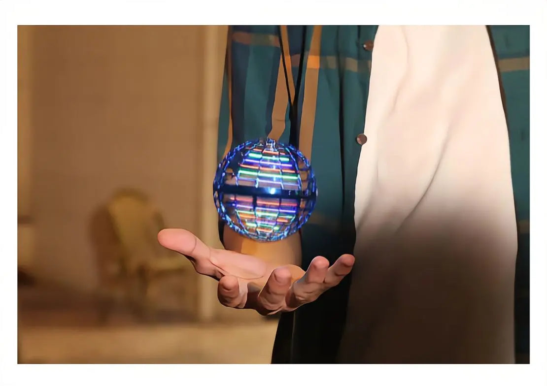 Our AeroDrone Orb's built-in multicolor LEDs create a mesmerizing glow that streaks across the sky. Each toss becomes a vibrant light show that captivates both kids and adults alike.